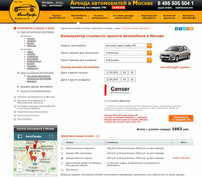 В АрендаАвто-пдл предлагается прокат автомобиля недорого.«Рено Логан» на сутки обошелся нам в 1 520 рублей (без учета скидки для клиента Genser), а это очень дешево для авто напрокат в Подольске.